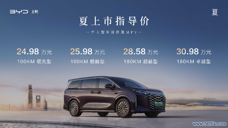 1月8日,中大型智能旗艦MPV比亞迪夏正式上市,共有4款配置,分為CLTC工況續(xù)航100km/180km,2種純電續(xù)航版本。并提供4種外觀顏色及2種內(nèi)飾配色可選,售價(jià)為24.98—30.98萬元。